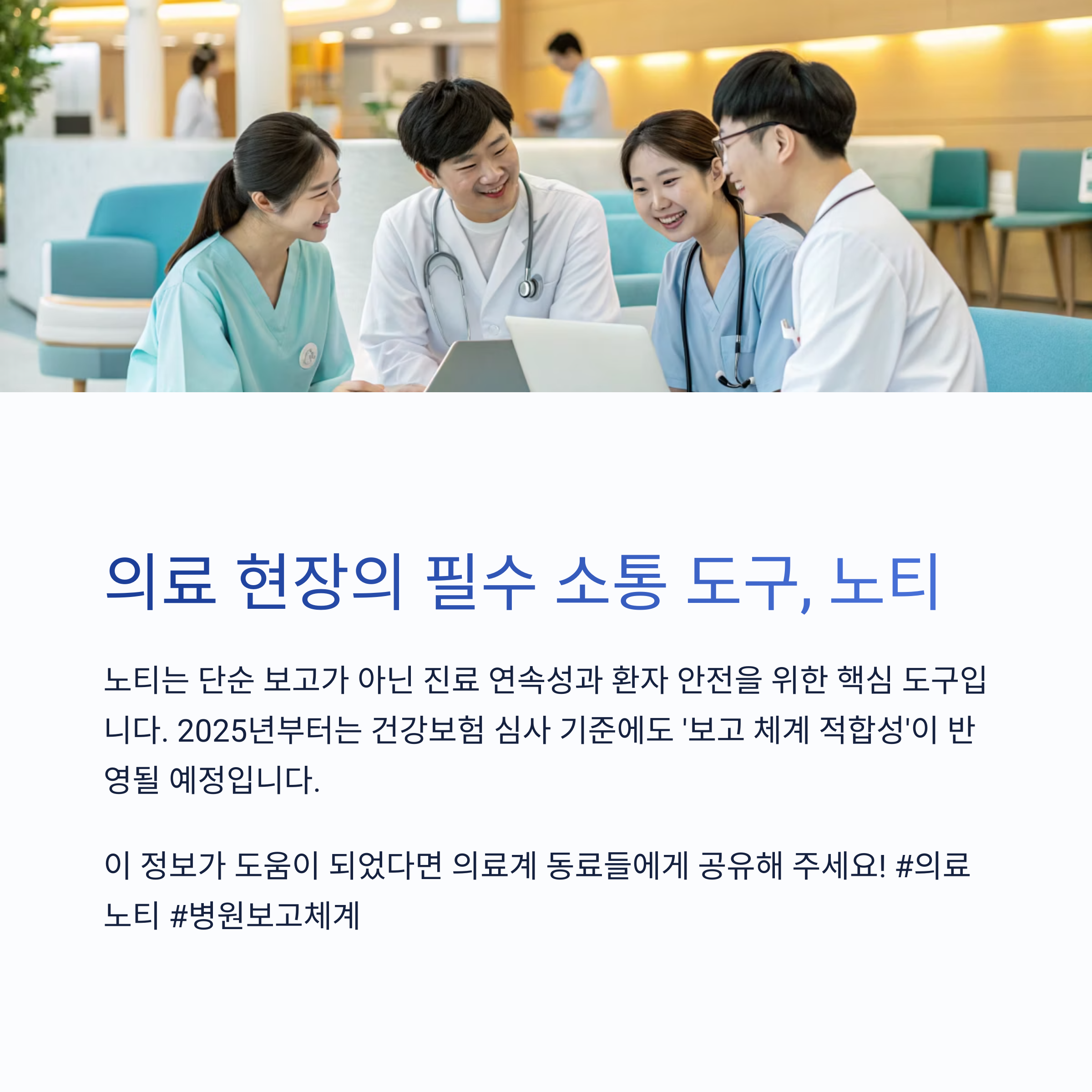 노티는 단순 보고가 아닌 진료 연속성과 환자 안전을 위한 핵심 도구로 자리매김하고 있습니다
