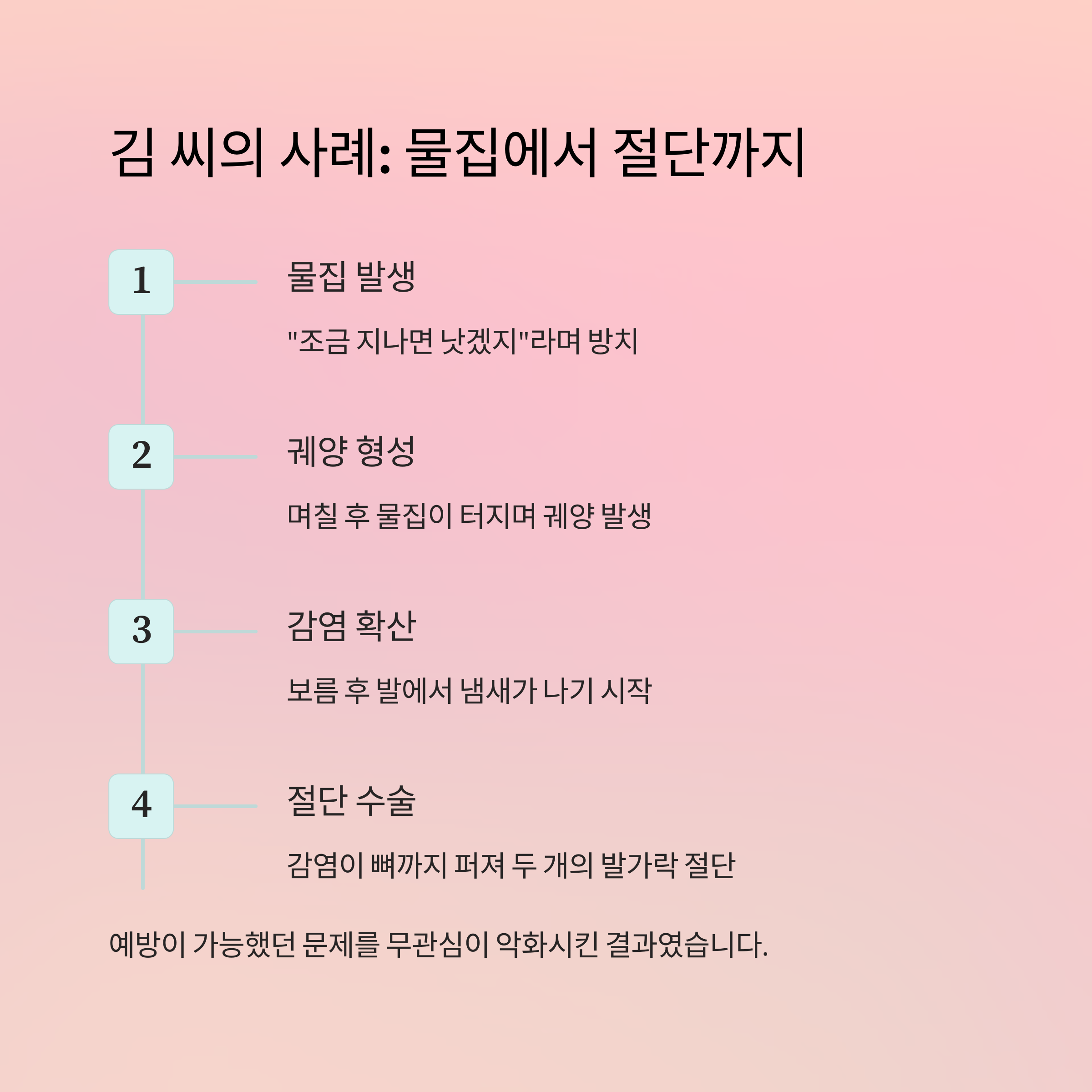상황극: 김 씨의 물집이 절단으로 이어지기까지