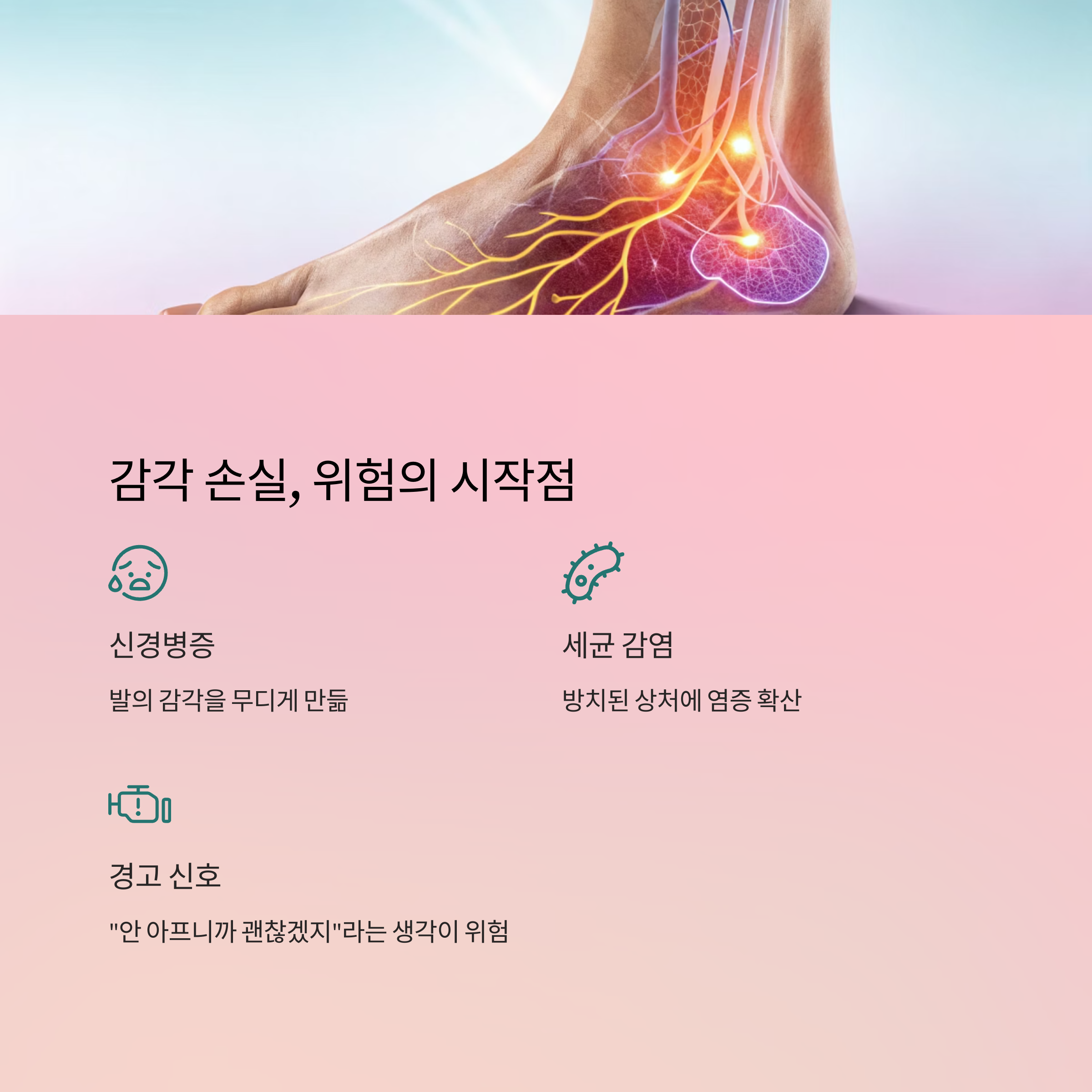 감각 저하는 당뇨발의 첫 경고 신호입니다.