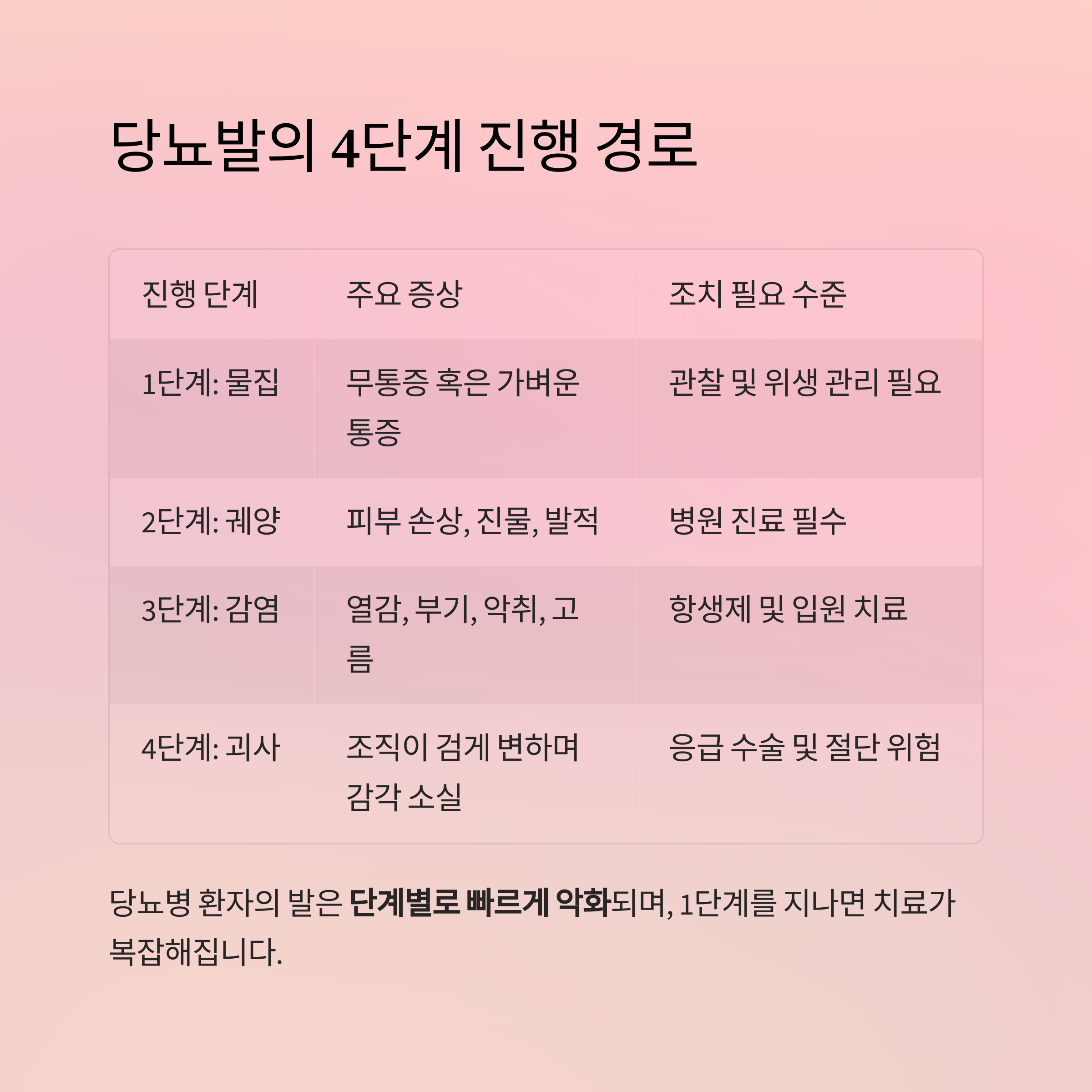당뇨병 환자의 발은 단계별로 빠르게 악화되며,