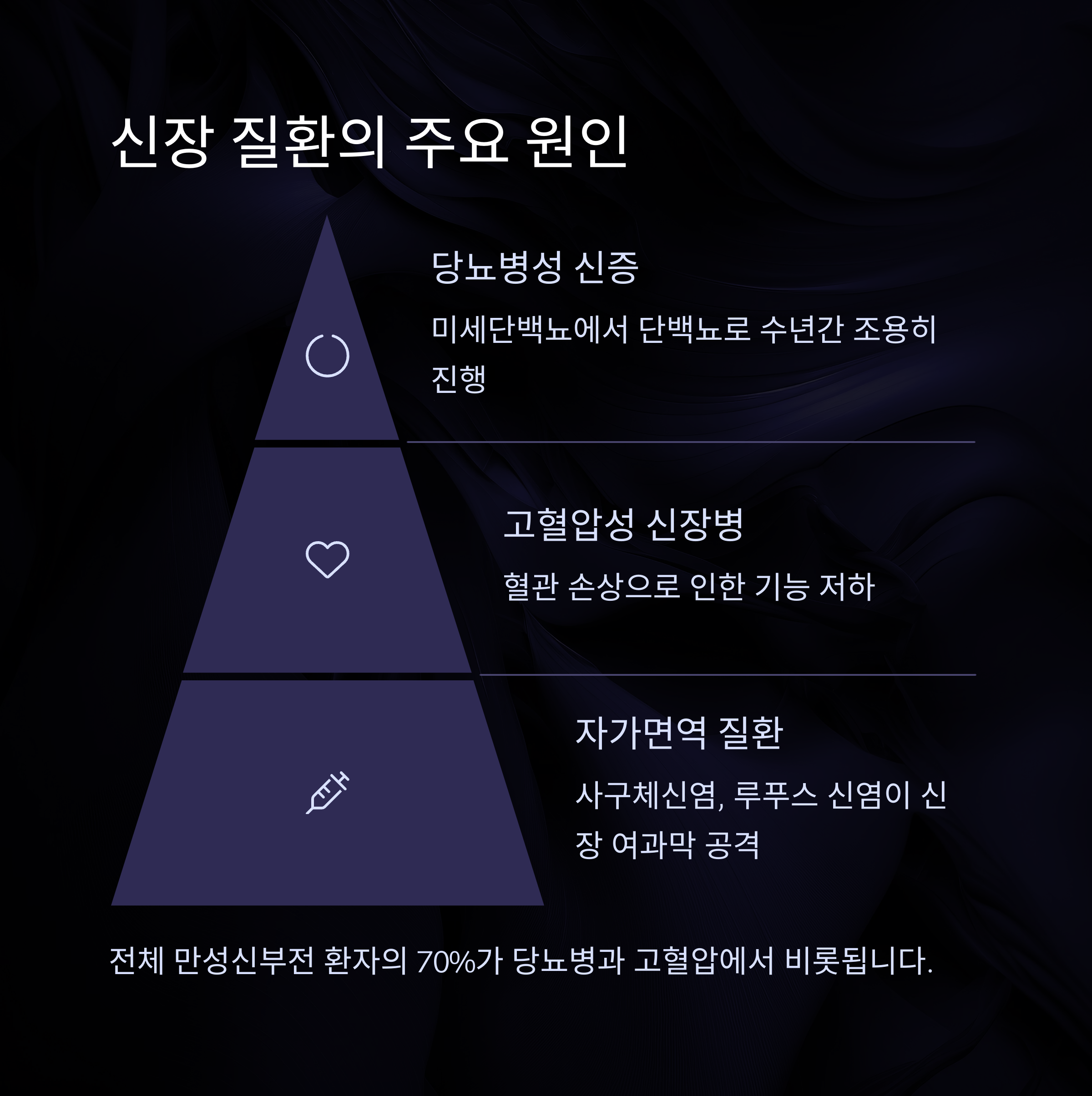 당뇨병과 고혈압은 신장 질환의 가장 흔한 원인입니다