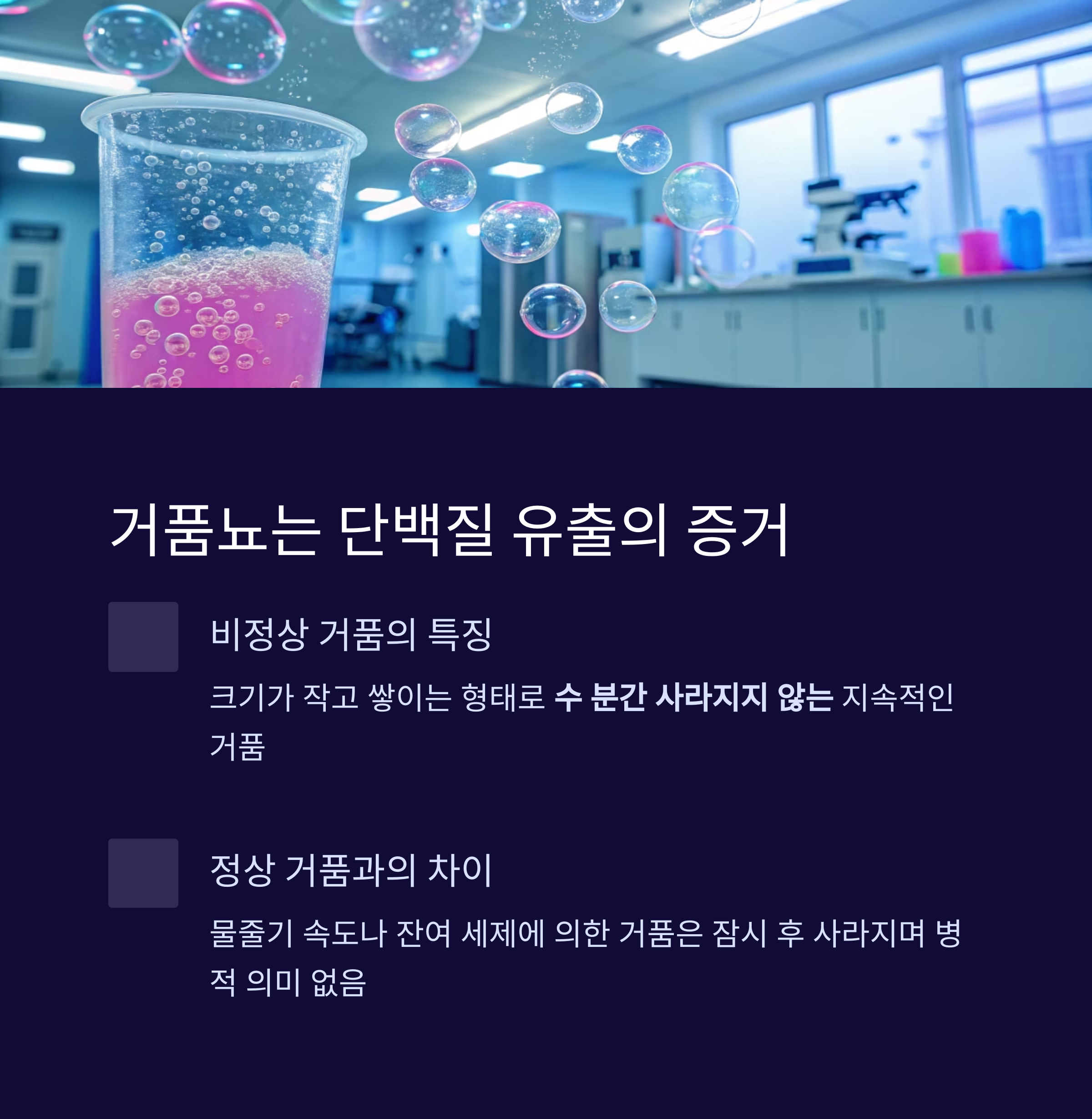 거품뇨는 단백질 유출을 나타내는 눈에 보이는 신호입니다