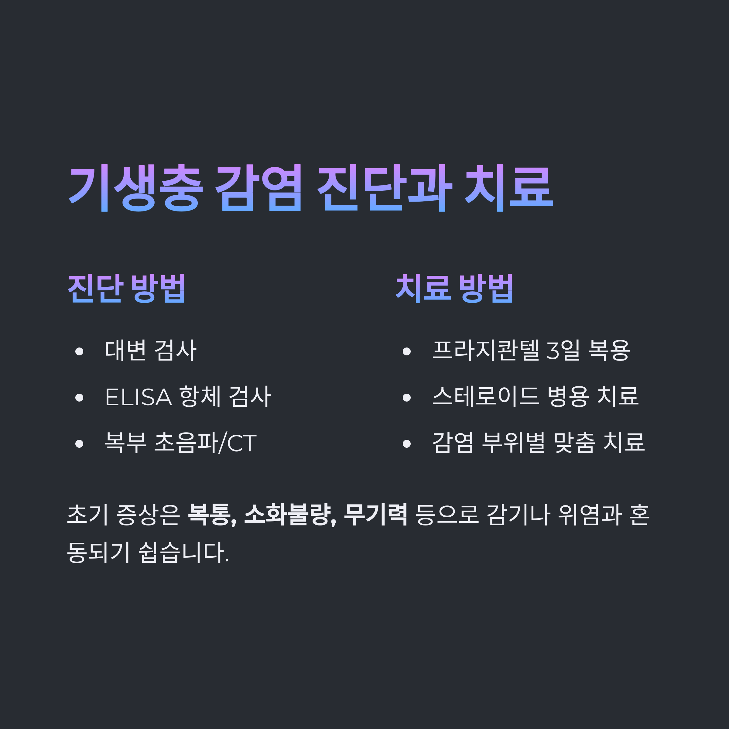 | ELISA 항체 검사 | 기생충 감염 초기 진단 |